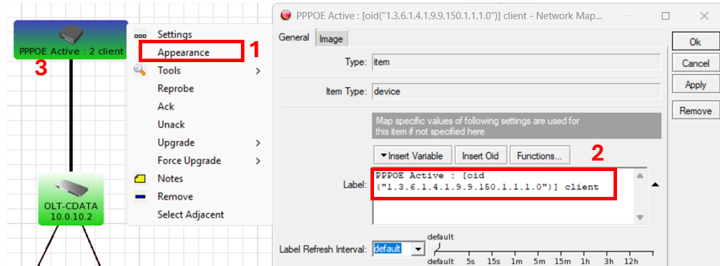 Setelah itu, kembali ketampilan awal The Dude, klik kanan router dan pilih appearance dan bikin format dilabel untuk memonitoring sebagai berikut :