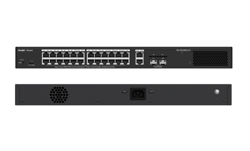 RG-ES228GS-LP REYEE merupakan Smart Cloud Managed PoE Switch dilengkapi dengan 26x 10/100/1000 Base-T port (24x PoE/PoE+ Out port) dan 2 SFP port. Cocok digunakan untuk kebutuhan SMB (Small Medium Business).