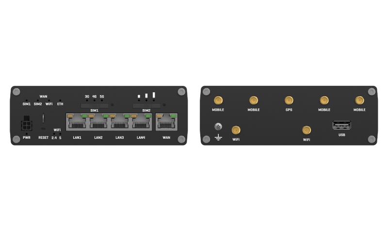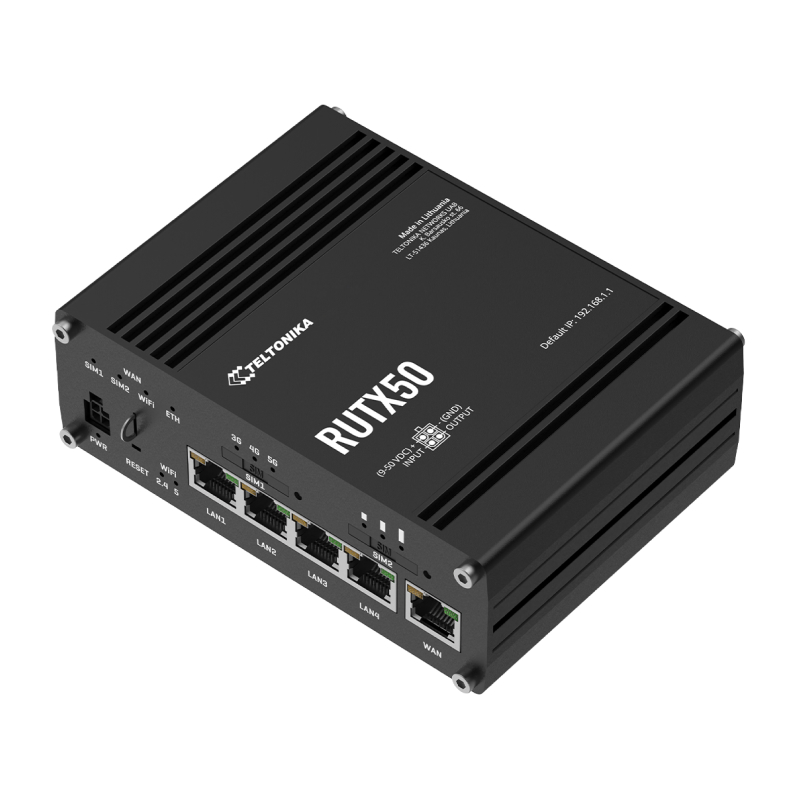 RUTX50 is a dual-SIM multi-network router offering 5G mobile communication for high-speed and data-heavy applications. Together with 5x Gigabit Ethernet ports and dual-band Wi-Fi, it provides data connection redundancy with auto-failover. Backward compatibility and multiple interfaces allow for long-term expandability and upgrading options.