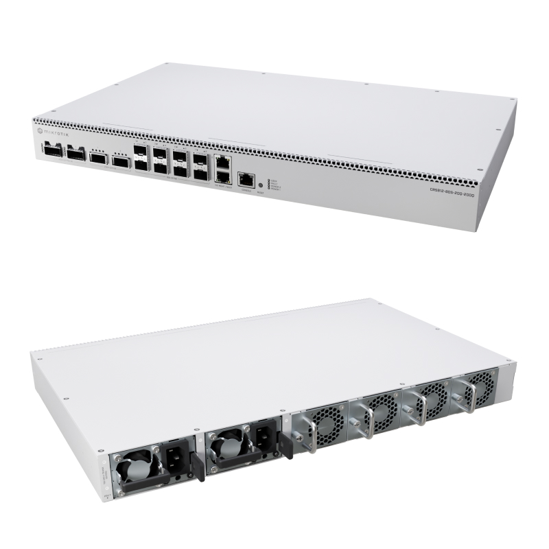 Mikrotik CRS812-8DS-2DQ-2DDQ-RM menghadirkan konektivitas 50G, 200G, dan 400G. Dilengkapi dengan CPU ARM Quad-core 2 GHz, dual-redundant power supplies, 4 kipas pendingin yang dapat diganti saat menyala (hot-swap), serta port yang terdiri dari 2x 10G Ethernet, 8x 50G SFP56, 2x 200G QSFP56, dan 2x 400G QSFP56-DD.