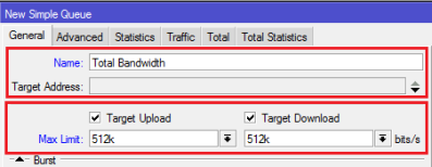 pada parameter Target Upload Max-Limit dan Target Download Max-Limit.